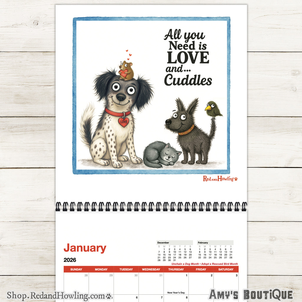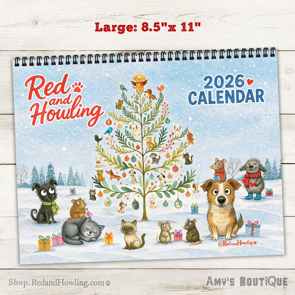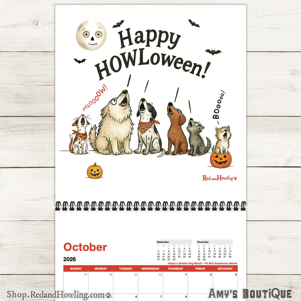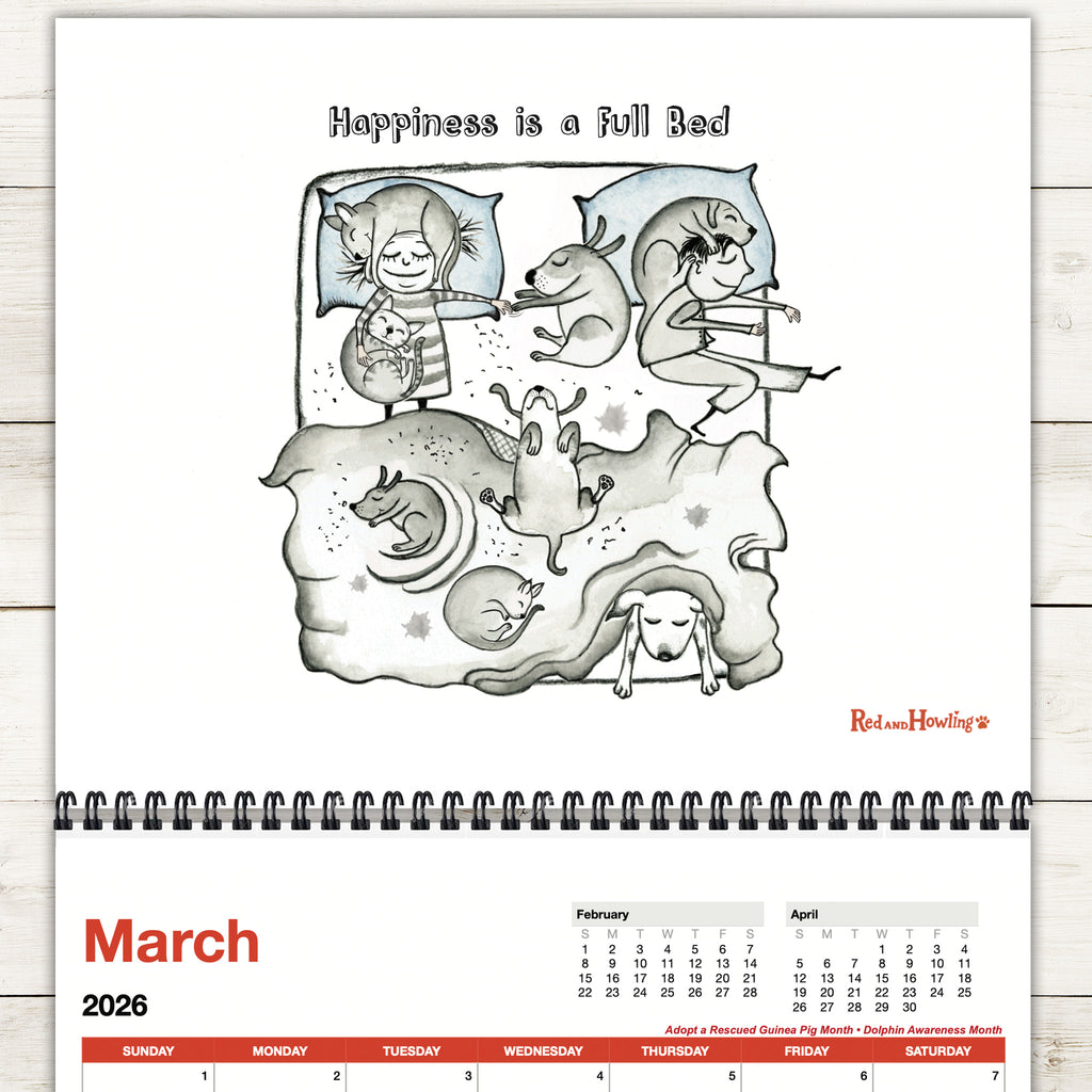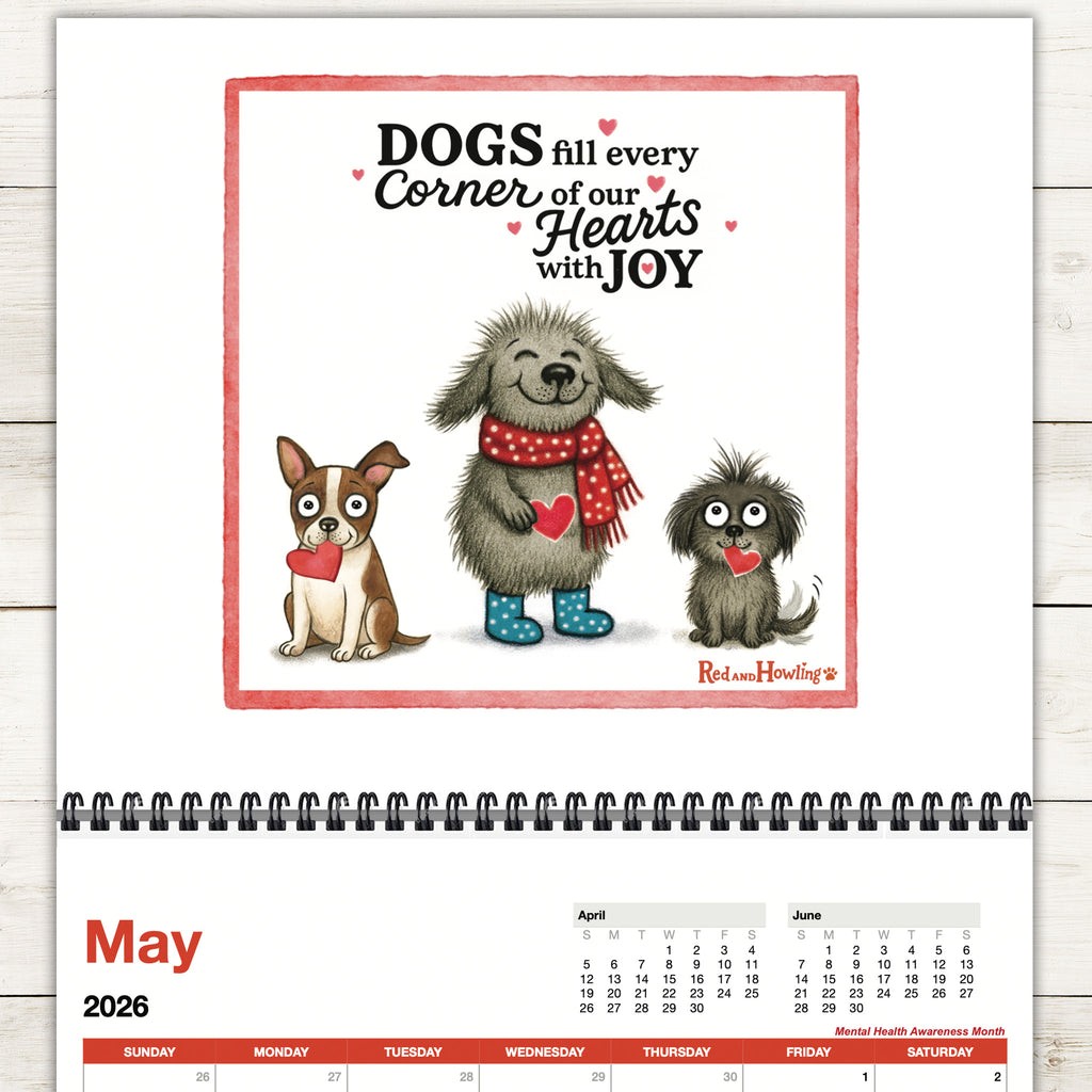 Calendars are illustrated/designed by me and proudly printed in Kansas City by a family-owned company committed to eco-friendly practices. Enjoy a bonus month to extend your year of inspiration, a Christmas greeting card perfect for sharing joy, and a fun mini poster to help wildlife. More than just dates, my calendars bring a little everyday joy into your home or office. Perfect as gifts or a treat for yourself—start your year with Red and Howling!