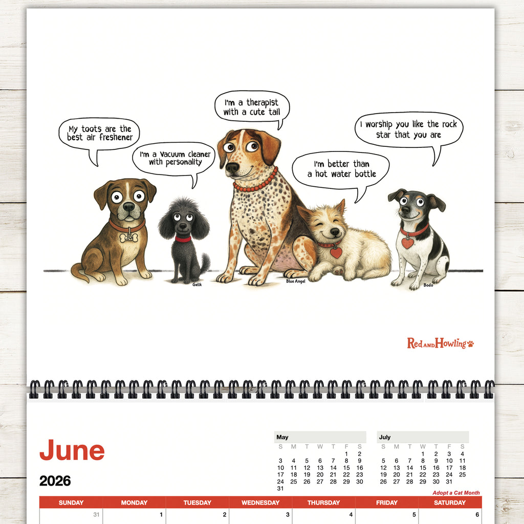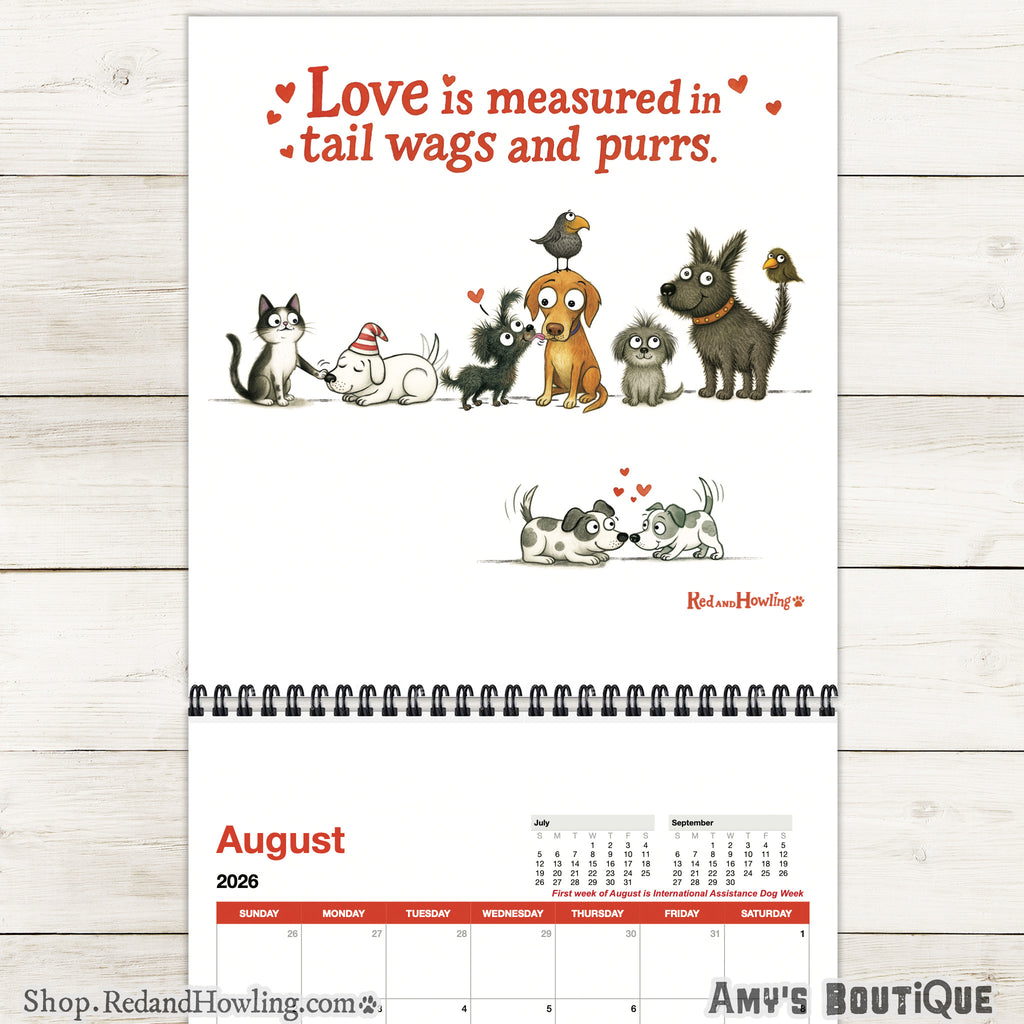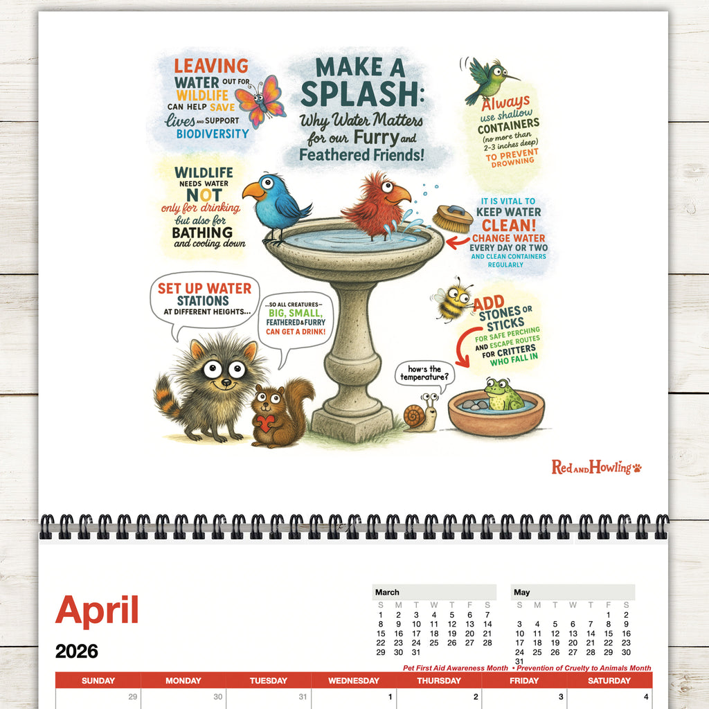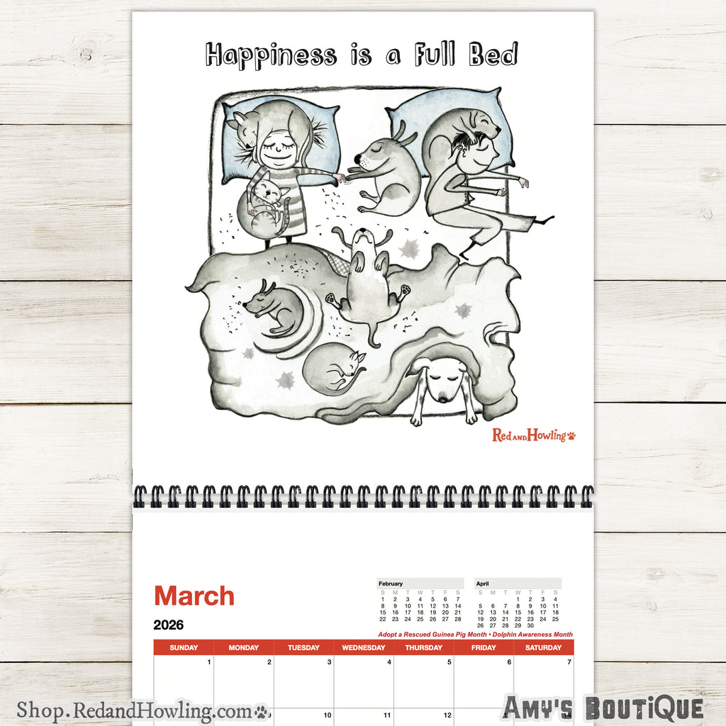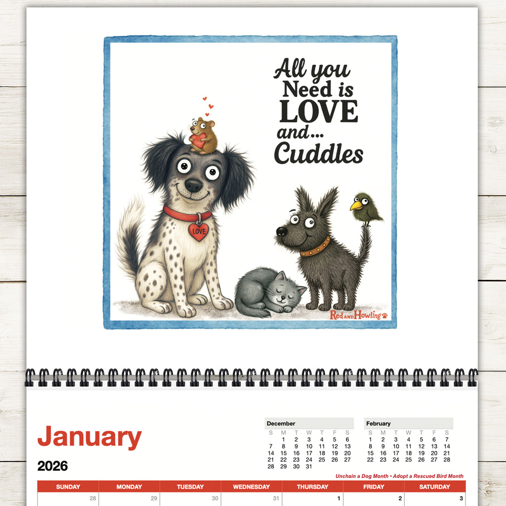 Calendars are illustrated/designed by me and proudly printed in Kansas City by a family-owned company committed to eco-friendly practices. Enjoy a bonus month to extend your year of inspiration, a Christmas greeting card perfect for sharing joy, and a fun mini poster to help wildlife. More than just dates, my calendars bring a little everyday joy into your home or office. Perfect as gifts or a treat for yourself—start your year with Red and Howling!