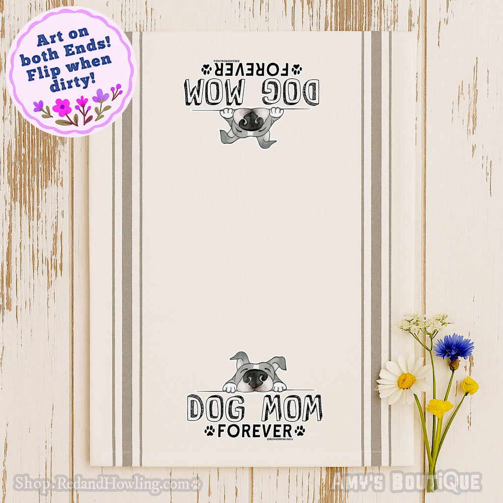 "Dog Mom Forever" Striped Vintage Bar Towel